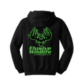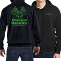 Show your pride in being part of the EWT Team with our signature colors and eye-catching logo. This 100% cotton pullover is super warm and comfortable for a sit in the stand or for a cool night out with the family. Hoodie has our Elusive Wildlife logo small on the front and our large logo in intense green covers the back.